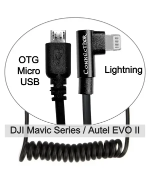Kabel ConnecThor OTG Micro USB (prosty) – Lightning (kątowy) zwinięty na sprężynce, długość 30-60 cm (EAN_7090045910191) od Thor’s Drone World
