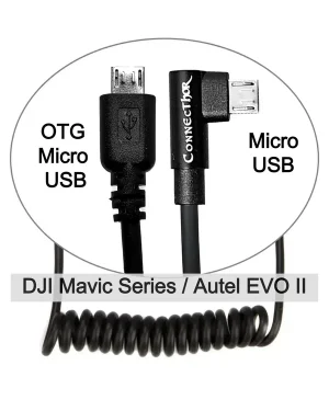 Kabel ConnecThor OTG Micro USB (prosty) – Micro USB (kątowy) zwinięty na sprężynce, długość 30-60 cm (EAN_7090045910207) od Thor’s Drone World