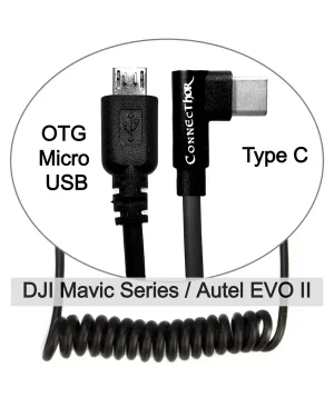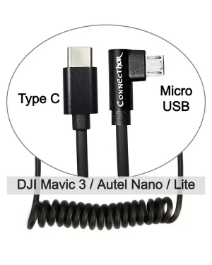 Kabel ConnecThor Type-C (prosty) – Micro USB (kątowy) zwinięty na sprężynce, długość 30-60 cm (EAN_7090045916285) od Thor’s Drone World