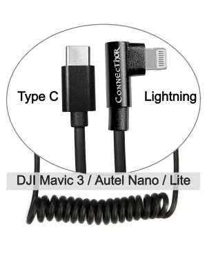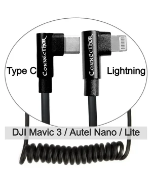 Kabel ConnecThor Type-C (prosty) – Lightning (kątowy) zwinięty na sprężynie, długość 30-60 cm (EAN_7090045916278) od Thor’s Drone World