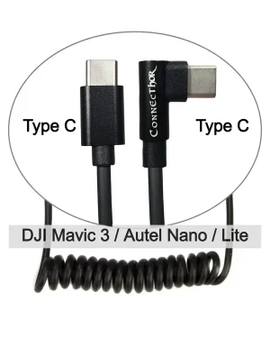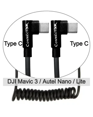 Złącze kablowe Type-C (proste) – Typ C (kątowe) zwinięte na sprężynie, długość 30-60 cm (EAN_7090045916261) od Thor’s Drone World
