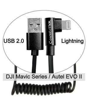 Kabel ConnecThor USB 2.0 (prosty) – Lightning (pod kątem) zwinięty na sprężynce, długość 30-60 cm (EAN_7090045910153) od Thor’s Drone World