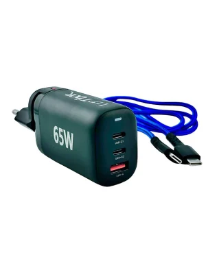 Szybka ładowarka LifThor 65W z technologią GaN, 3 porty, kabel typu C o długości 1m, międzynarodowy system gniazd (EAN_7090045916520)